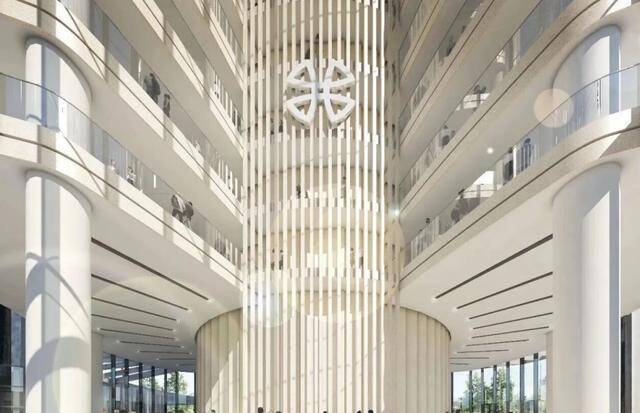 中区内部还有一个从西南延伸到东北方向的大型中庭,阳光顺着中庭洒进来,把整个核心区域照得透亮,再加上开放的楼梯间,不同部门之间的走动变得格外方便。