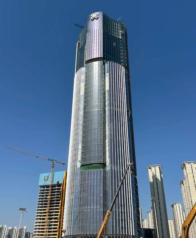 目前工地上一天一个样,幕墙铺装和机电安装都在抢工期,现场实景图跟最初的效果图几乎没差别,那股现代感和挺拔劲儿已经藏不住了。